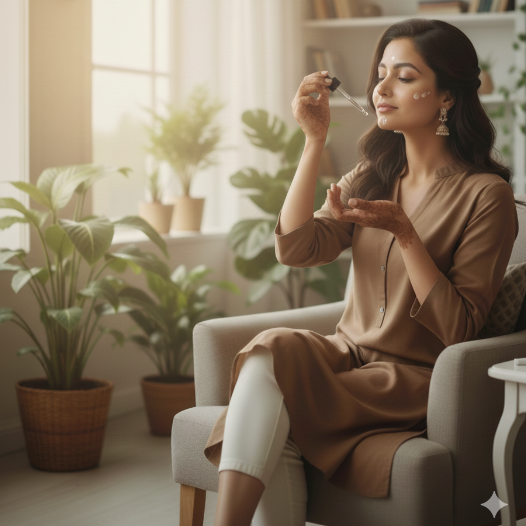 Step 2: Apply the Gluta Vitamin C Serum in the morning & evening for brightening.